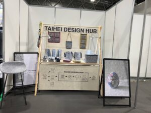 当社も出展しており、廃棄衣料から製作した雑貨類を展示しました。